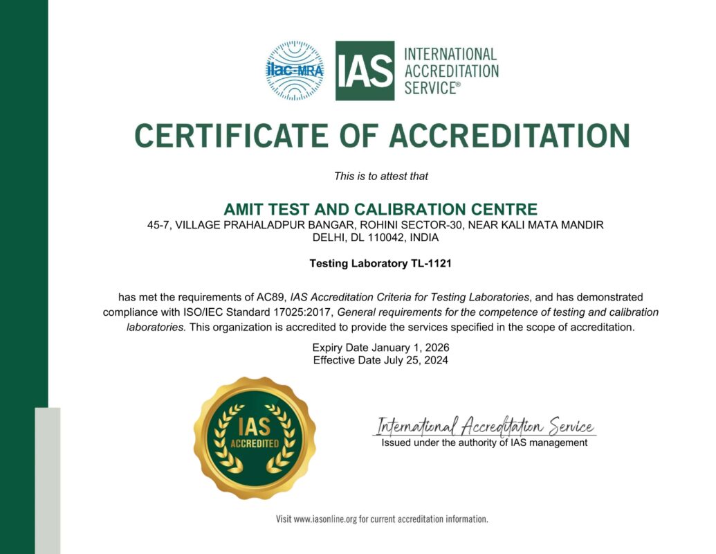 Amit Test & Calibration Centre is a premier Testing and Calibration centre in New Delhi India.